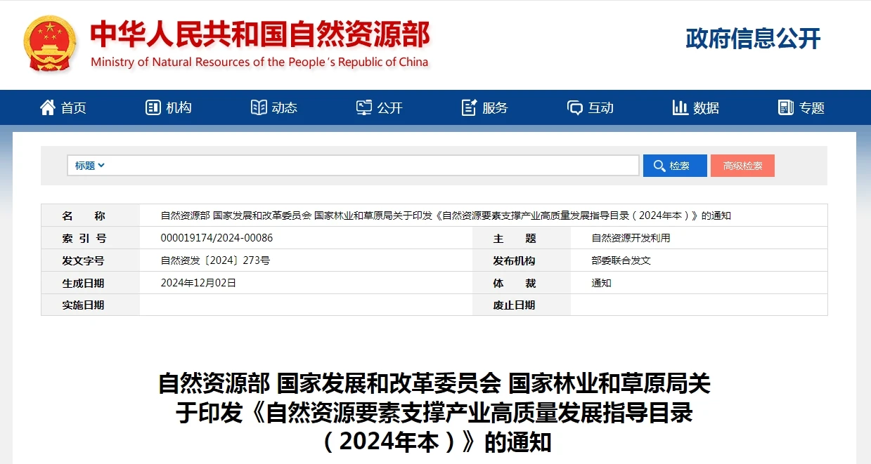 自然资源部 国家发展和改革委员会 国家林业和草原局关于印发《自然资源要素支撑产业高质量发展指导目录(2024年本)》的通知